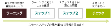 - 単元のチェックテストに合格したら、次の単元へ、不合格の場合はリチェックを行います