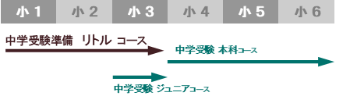 アイ・エル・エスでは、4年生(3年2月)から「中学受験・本科コース」、3年生(2年2月)から「中学受験・ジュニアコース」という中学受験コースを設定しております。中学受験の学習においては、決して少なくはない学習内容を身につけていかなければなりませんので、それに対応していくために、ある程度の学力を低学年の内に身につけておく必要があります。さらに、継続的に一定量の学習に触れながら「学習習慣」を身につけていくことも中学受験の学習の重要な要素となります。そんな中学受験を始めるために必要な「学力」や「学習習慣」を身につけるためのコースが「中学受験準備・リトルコース」です。